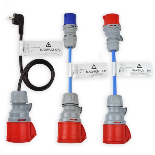 NRGkick Classic adapter set 32A CEE 32A to CEE 16A, 5 x 2,5mm², max. 11kW CEE 32A to CEE blue, 3 x 2,5mm², max. 3,7kW CEE 32A to Schuko, 3 x 2,5mm², max. 13A